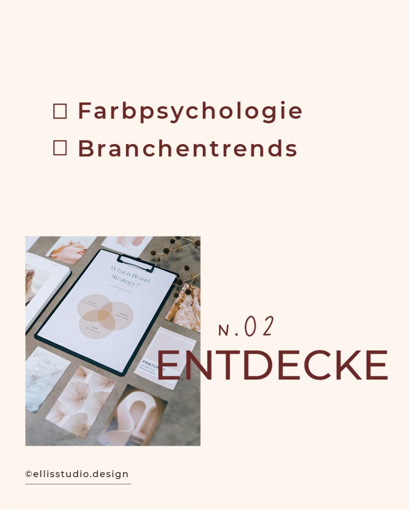 Im nächsten Schritt schauen wir uns Farben genauer an. Welche Wirkung bringen sie mit? Ein kühles Blau kann Vertrauen und Klarheit vermitteln, Grün steht oft für Balance und Entwicklung, warme Töne wie Orange oder Rot wirken lebendig und nahbar. Gleichzeitig werfe ich einen Blick auf die Branche – nicht, um Trends zu kopieren, sondern um bewusst zu entscheiden, ob wir uns daran orientieren oder einen eigenen Weg gehen.